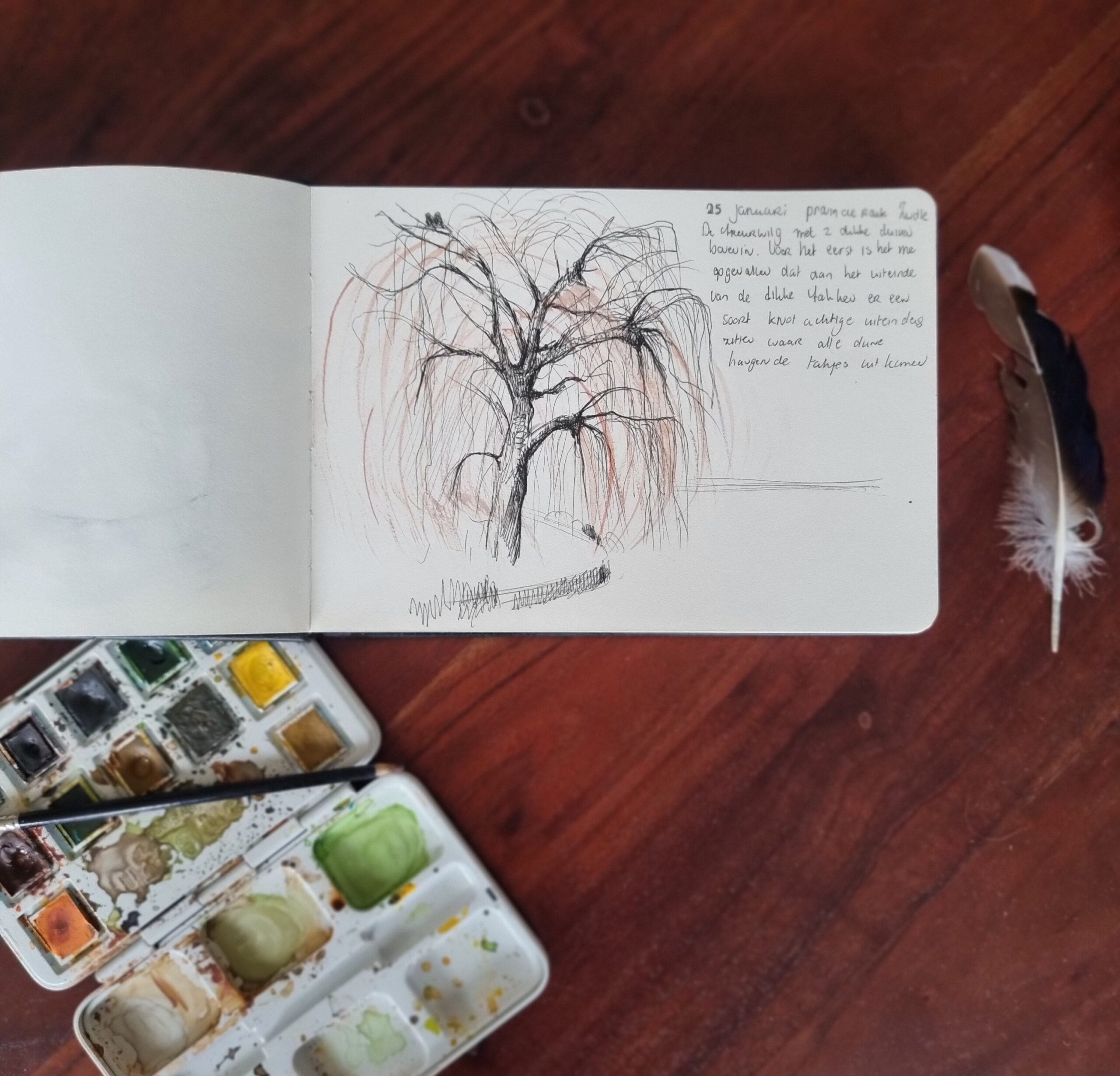 Je stapt een wereld binnen waarin de natuur je gids wordt en je schetsboek je kompas. Deze workshop journaling is een uitnodiging om te vertragen, aandachtiger te kijken en de kleine avonturen om je heen vast te leggen. Je leert eenvoudige schets- en observatietechnieken waarmee je de natuur op een speelse manier onderzoekt en verbeeldt. Met waterverf, waterkwasten en fineliner of potlood leg je vast wat je ziet, hoort, voelt en ontdekt.